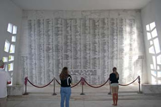 A boat took us to the memorial site located on top of the Arizona's sunken and rusting remains. Oil still leaks from the ship. It is said that when the last assigned to the Arizona dies, so will the oil stop flowing.